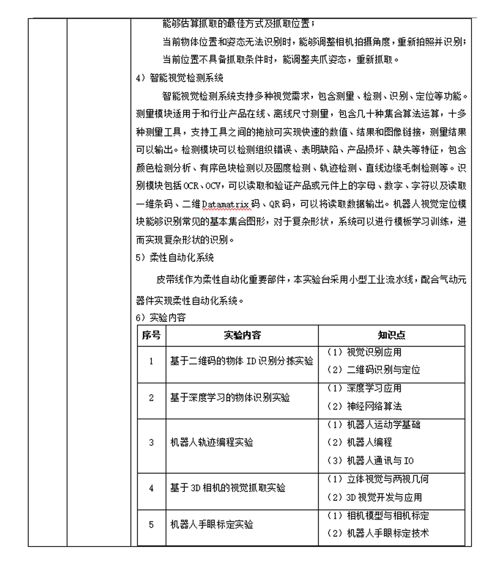 機器人視覺(jué)開(kāi)發(fā)平臺主要由六軸協(xié)作機械臂、3D視覺(jué)抓取系統、工業(yè)智能視覺(jué)系統、PLC柔性自動(dòng)化系統和深度學(xué)習軟件構成;搭載智能實(shí)時(shí)機器人操作系統,可靈活擴展多種機器人應用;支持實(shí)訓和科研兩大功能屬性;滿(mǎn)足機械電子、人工智能、機器人工程、計算機等專(zhuān)業(yè)學(xué)科的教學(xué)和科研需求。