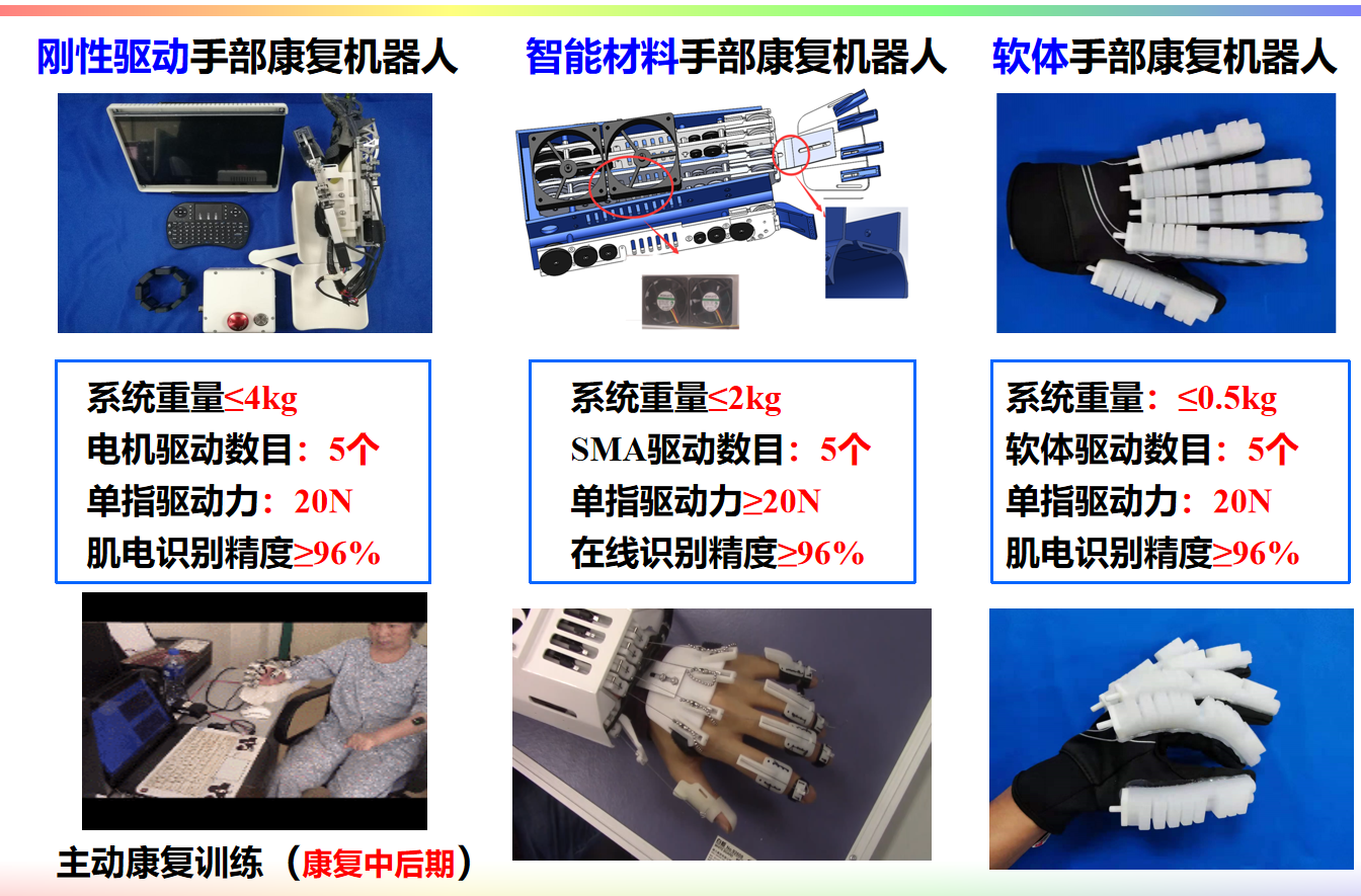 手部康復機器人分為剛性驅動(dòng)手部康復機器人、智能材料手部康復機器人、軟體手部康復機器人,適用不同場(chǎng)景。